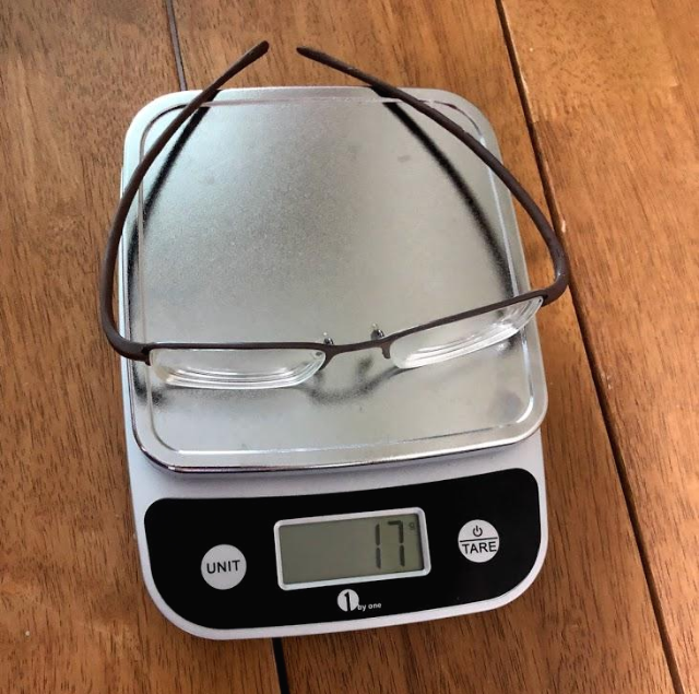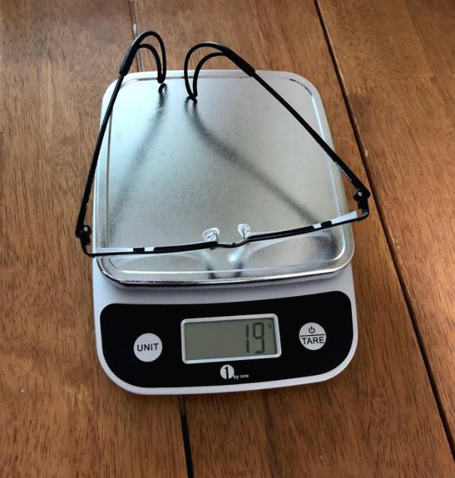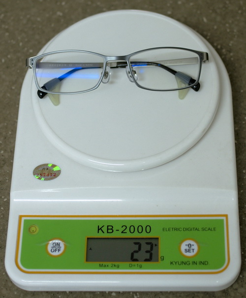 다시 열흘 정도를 기다려서 렌즈가 교체된 안경을 받았습니다. 새 안경을 받으면 습관적으로 무게를 측정합니다.