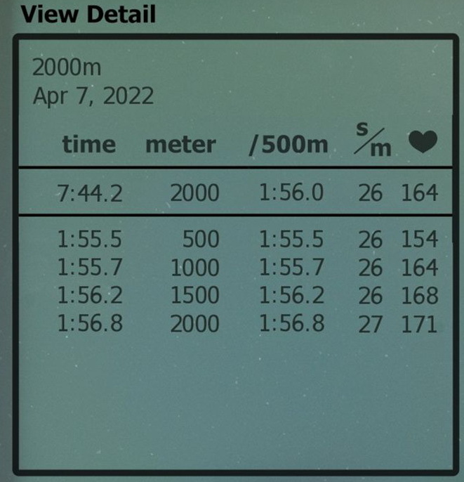 20220407 - 2,000m (7:44.2)