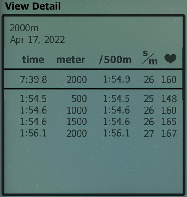 20220417 - 2,000m (7:39.8)