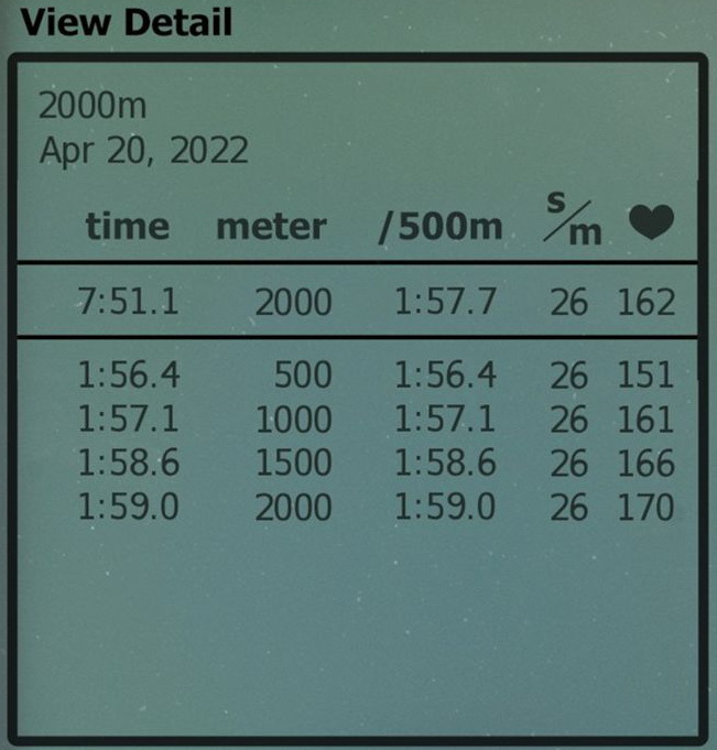 20220407 - 2,000m (7:44.2)