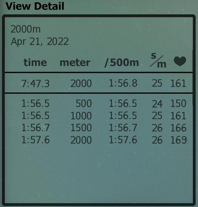 20220417 - 2,000m (7:39.8)