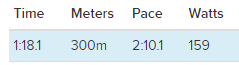 일단 2:10 / 500m 페이스는 약 160 Watts
